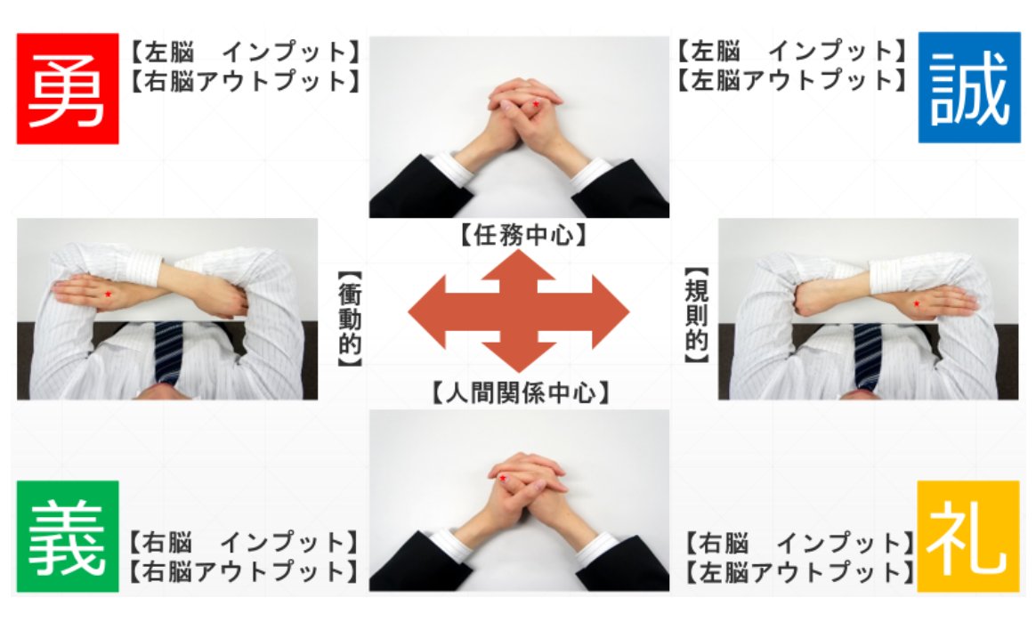 この診断結果は、あくまでも一人ひとりの思考特性(特徴)を示したもので「勇タイプが義タイプより優れている」とか、「誠タイプの方が礼タイプよりも能力的に優れている」ということは決してない。